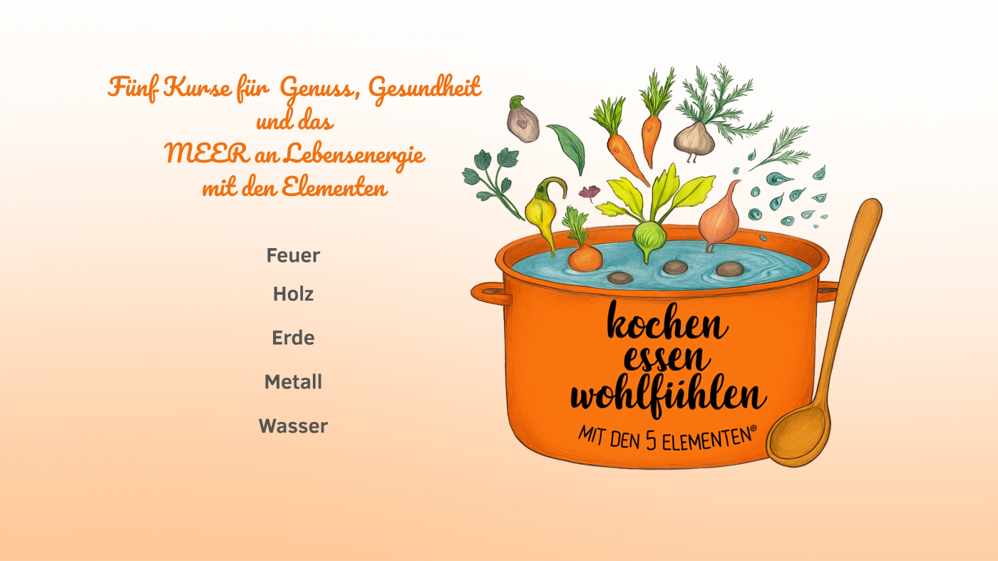 Wenn dich das interessiert, nehme Kontakt zu mir auf. In 2026 gibt es 5 Mitkochtage für alle 5 Elemente. Dazu habe ich gemeinsam mit einer 5-Elemente-Köchin einen Kochkurs kreiert. In unserer Küche wird sichtbar gemachte Liebe in Töpfe geworfen und in Verbindung gebracht.